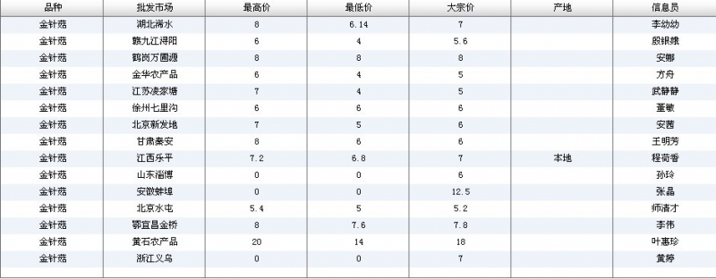 2024年3月8日全国主要批发市场金针菇价格行情