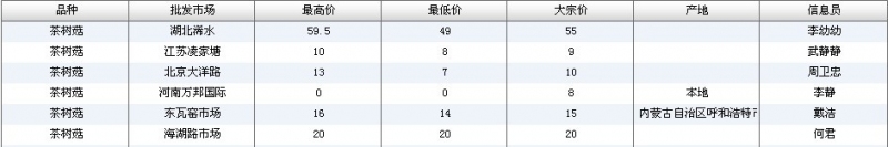 2024年3月18日全国主要批发市场茶树菇价格行情