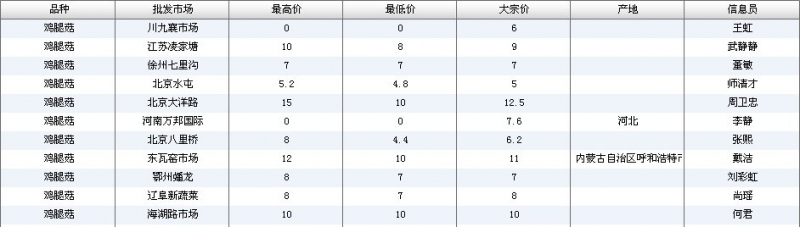 2024年3月18日全国主要批发市场鸡腿菇价格行情