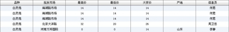 2012.06.30 白灵菇全国批发市场价格行情 单位(元/公斤) 来源:全国农产品批发市场价格信息网