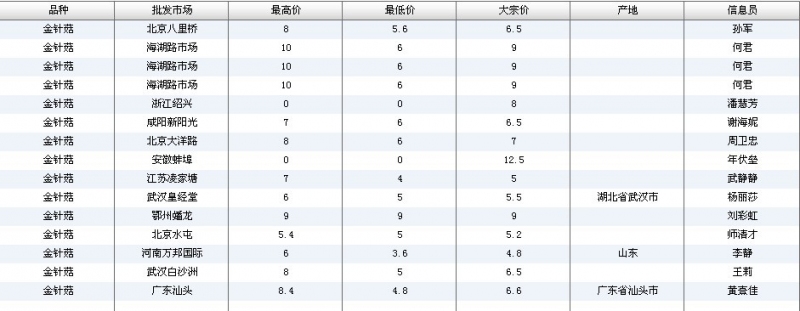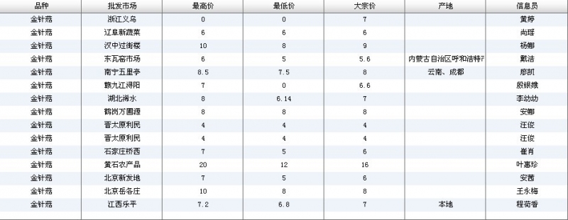 2024年3月8日全国主要批发市场金针菇价格行情