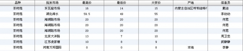 2024年3月18日全国主要批发市场茶树菇价格行情