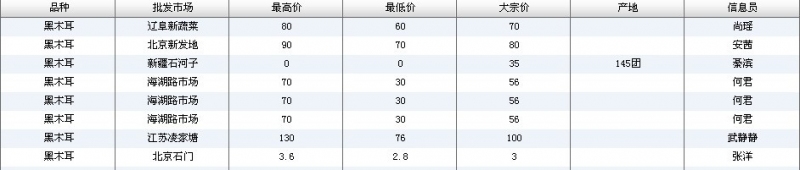 2012.06.30 黑木耳全国批发市场价格行情 单位(元/公斤) 来源:全国农产品批发市场价格信息网