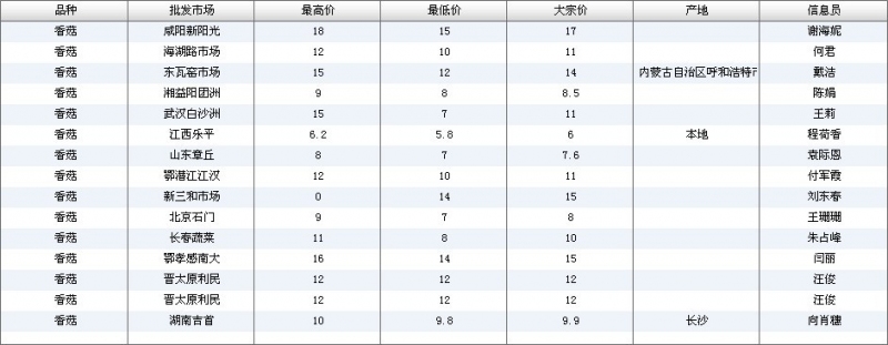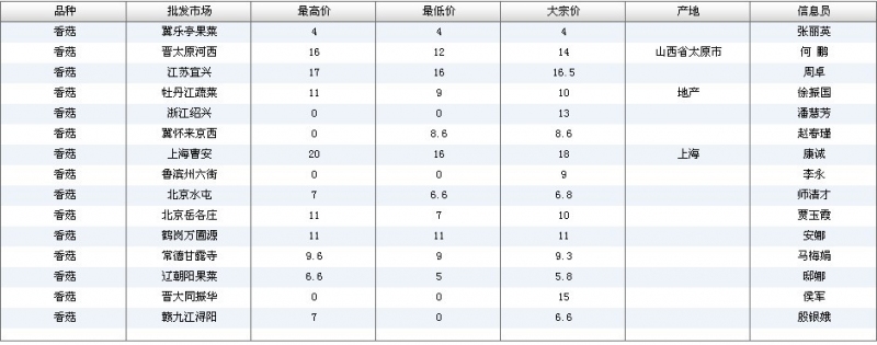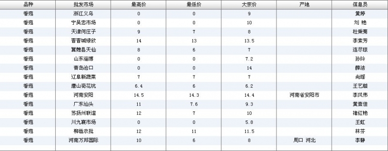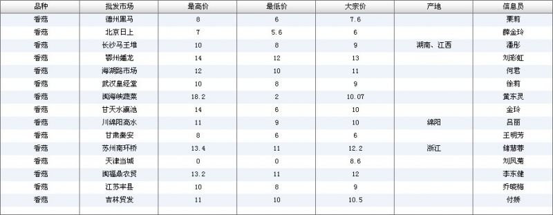 2012.07.02 香菇全国批发市场价格行情 单位(元/公斤) 来源:全国农产品批发市场价格信息网