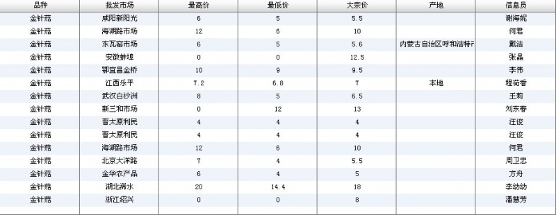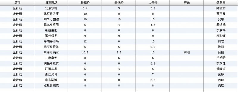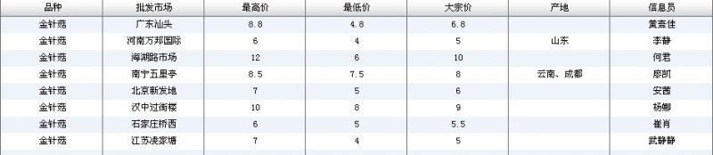 2012.07.02 金针菇全国批发市场价格行情 单位(元/公斤) 来源:全国农产品批发市场价格信息网