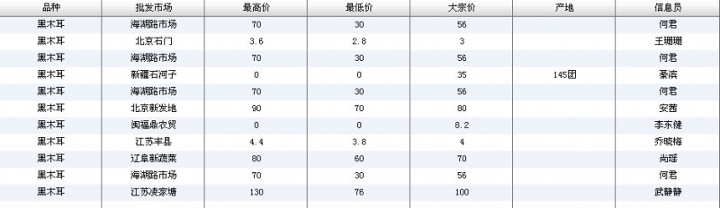 2012.07.02 黑木耳全国批发市场价格行情 单位(元/公斤) 来源:全国农产品批发市场价格信息网