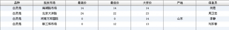 2015年4月3日白灵菇全国批发市场行情