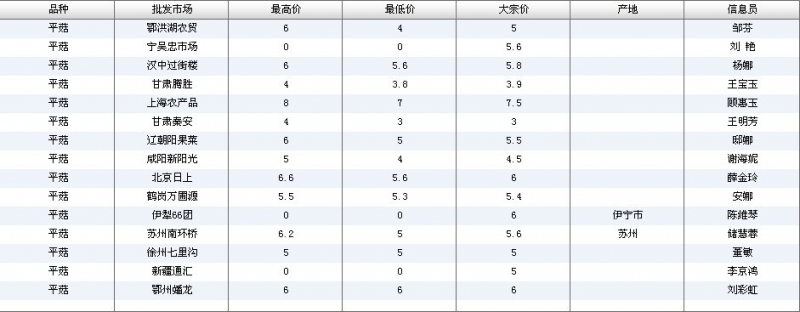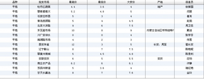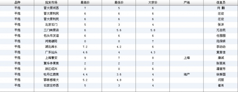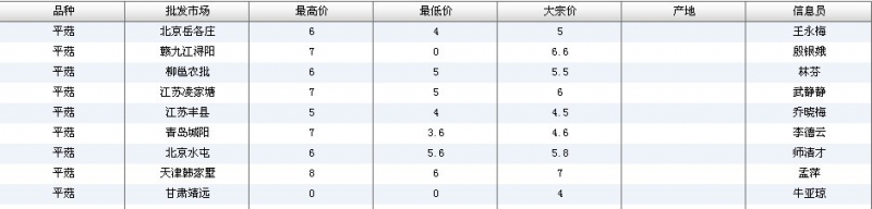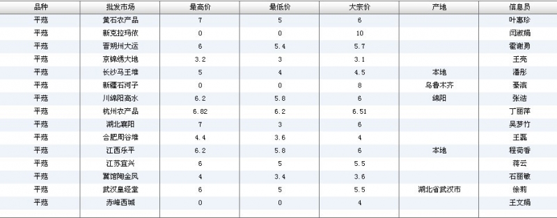 2012.07.04 平菇全国批发市场价格行情 单位(元/公斤) 来源:全国农产品批发市场价格信息网