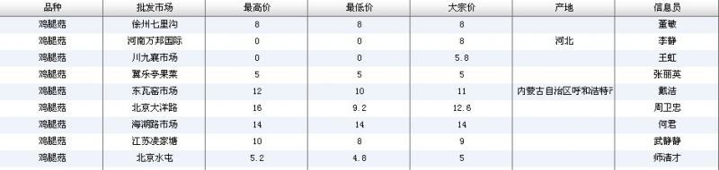 2012.07.04 鸡腿菇全国批发市场价格行情 单位(元/公斤) 来源:全国农产品批发市场价格信息网