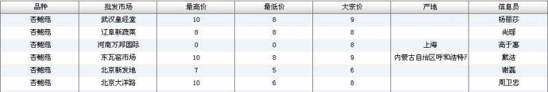 2024年3月8日全国主要批发市场杏鲍菇价格行情