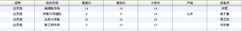 2012.07.06 白灵菇全国批发市场价格行情 单位(元/公斤) 来源:全国农产品批发市场价格信息网