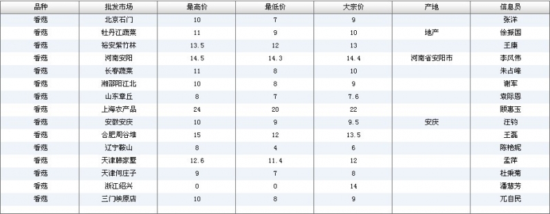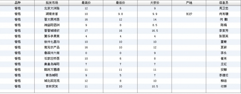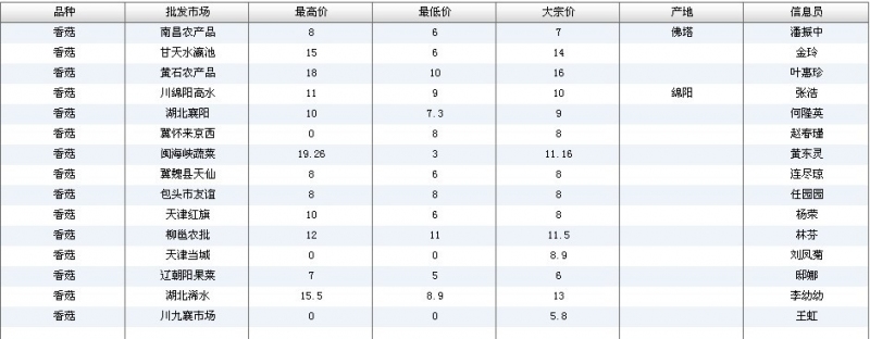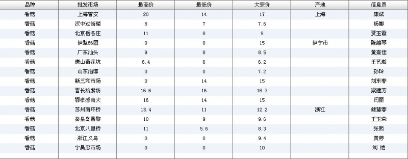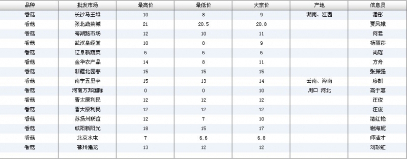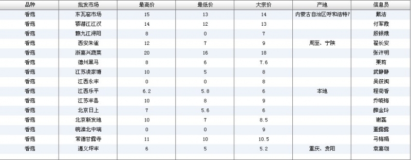 2012.07.06 香菇全国批发市场价格行情 单位(元/公斤) 来源:全国农产品批发市场价格信息网