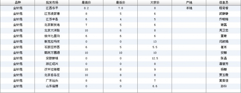 2024年3月8日全国主要批发市场金针菇价格行情