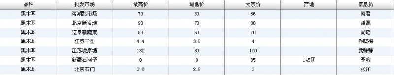 2012.07.06 黑木耳全国批发市场价格行情 单位(元/公斤) 来源:全国农产品批发市场价格信息网