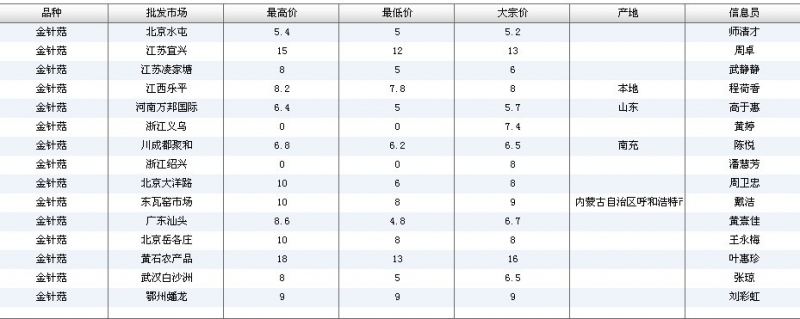 2012.07.07 金针菇全国批发市场价格行情 单位(元/公斤) 来源:全国农产品批发市场价格信息网