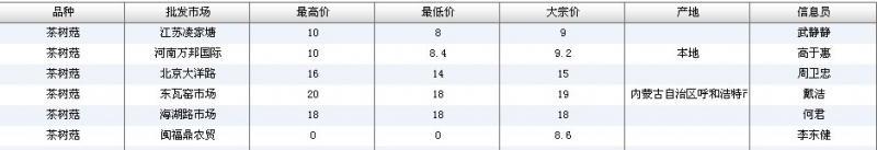 2024年3月18日全国主要批发市场茶树菇价格行情