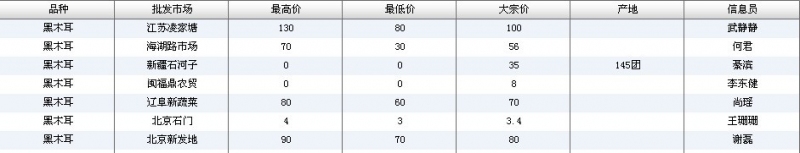 2012.07.07 黑木耳全国批发市场价格行情 单位(元/公斤) 来源:全国农产品批发市场价格信息网