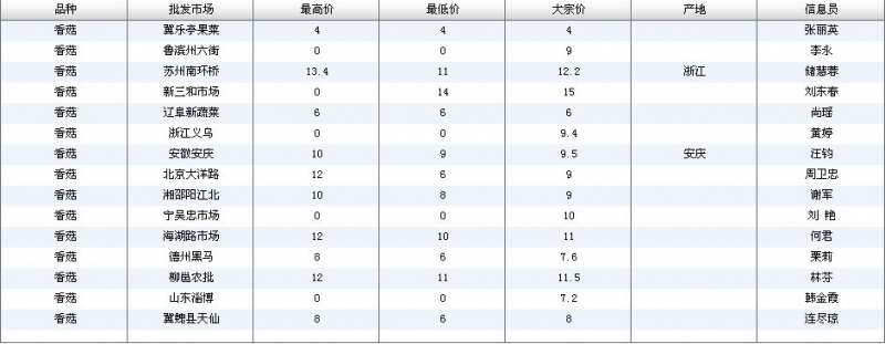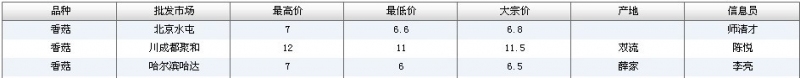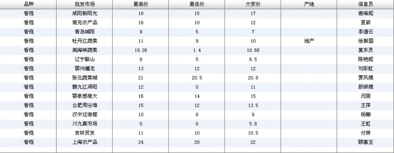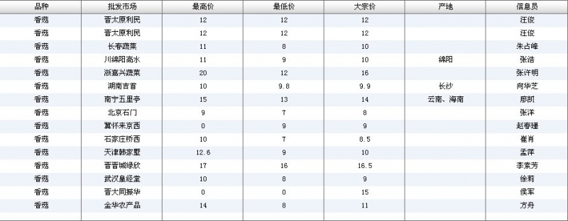 2012.07.09 香菇全国批发市场价格行情 单位(元/公斤) 来源:全国农产品批发市场价格信息网