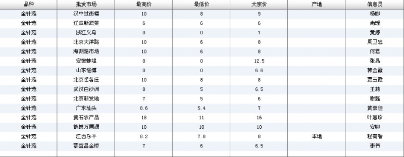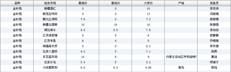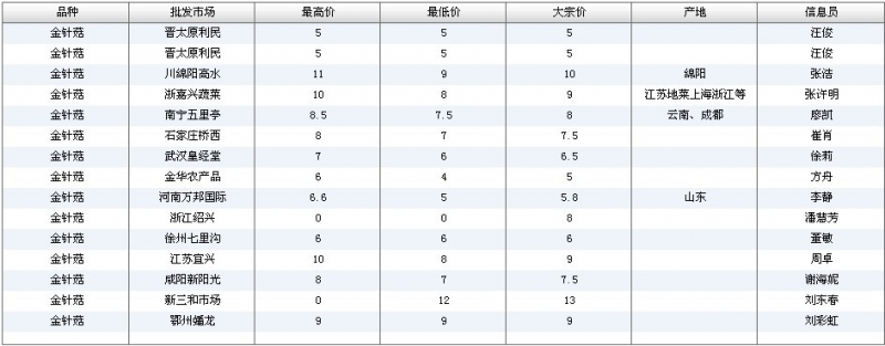 2012.07.09 金针菇全国批发市场价格行情 单位(元/公斤) 来源:全国农产品批发市场价格信息网