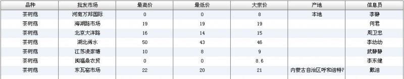 2012.07.09 茶树菇全国批发市场价格行情 单位(元/公斤) 来源:全国农产品批发市场价格信息网