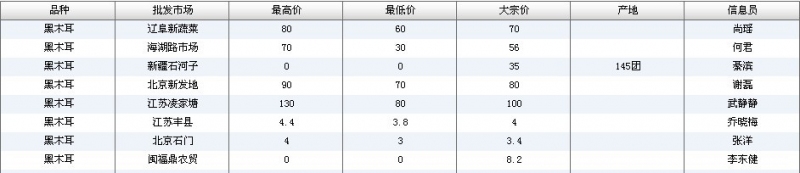 2012.07.10 黑木耳全国批发市场价格行情 单位(元/公斤) 来源:全国农产品批发市场价格信息网