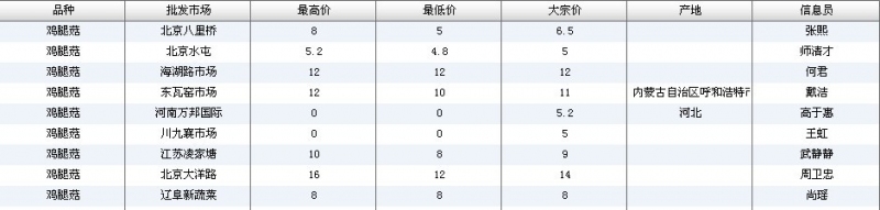 2012.07.11 鸡腿菇全国批发市场价格行情 单位(元/公斤) 来源:全国农产品批发市场价格信息网