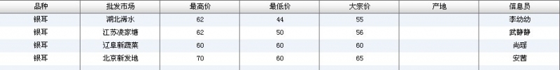 2012.07.11 银耳全国批发市场价格行情 单位(元/公斤) 来源:全国农产品批发市场价格信息网