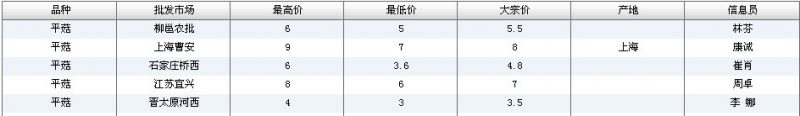 2012.07.12 平菇全国批发市场价格行情 单位(元/公斤) 来源:全国农产品批发市场价格信息网