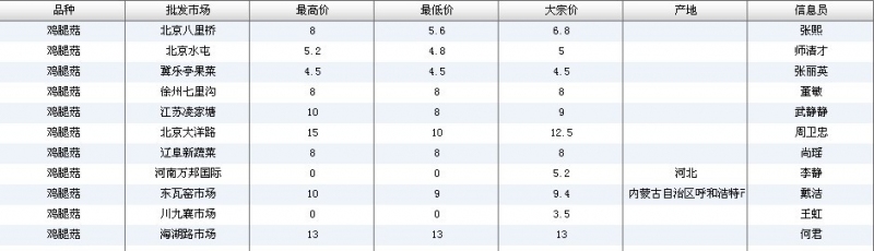 2012.07.16 鸡腿菇全国批发市场价格行情 单位(元/公斤) 来源:全国农产品批发市场价格信息网