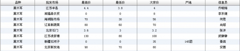 2022年3月18日黑木耳全国批发市场行情