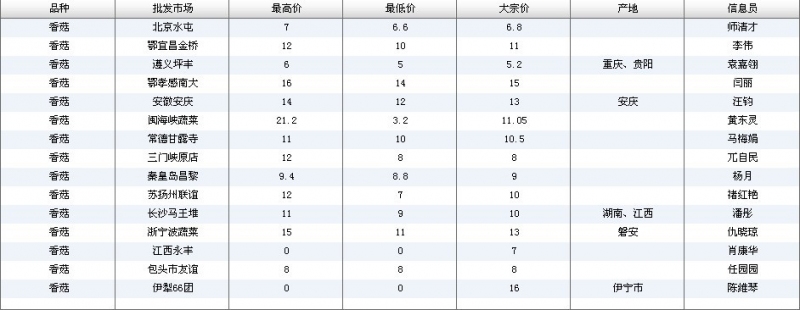 2012.07.20 香菇全国批发市场价格行情 单位(元/公斤) 来源:全国农产品批发市场价格信息网