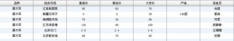 2012.07.26 黑木耳全国批发市场价格行情 单位(元/公斤) 来源:全国农产品批发市场价格信息网