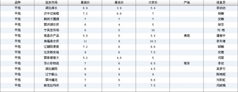 2012.08.01 平菇全国批发市场价格行情 单位(元/公斤) 来源:全国农产品批发市场价格信息网