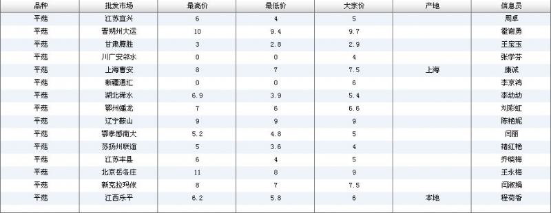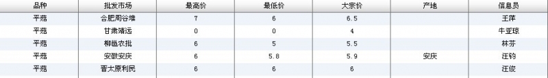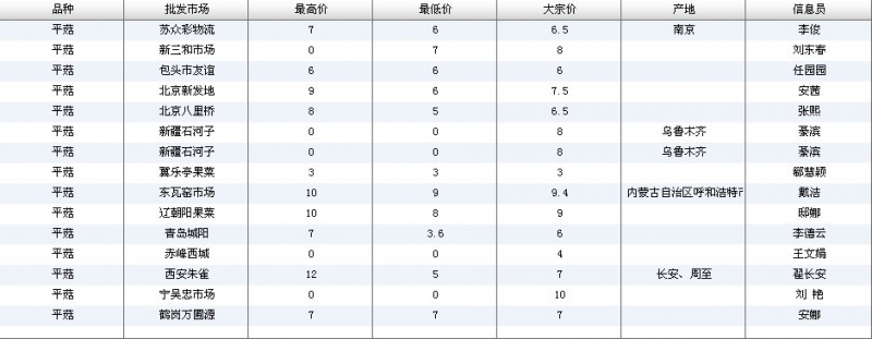 2012.08.02 平菇全国批发市场价格行情 单位(元/公斤) 来源:全国农产品批发市场价格信息网