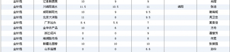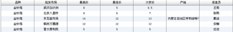 2012.08.02 金针菇全国批发市场价格行情 单位(元/公斤) 来源:全国农产品批发市场价格信息网