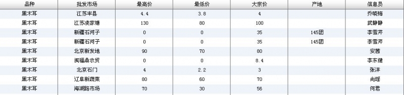 2022年3月18日黑木耳全国批发市场行情