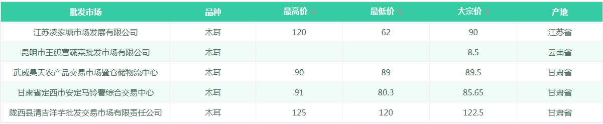 2018年9月12日木耳全国批发市场行情