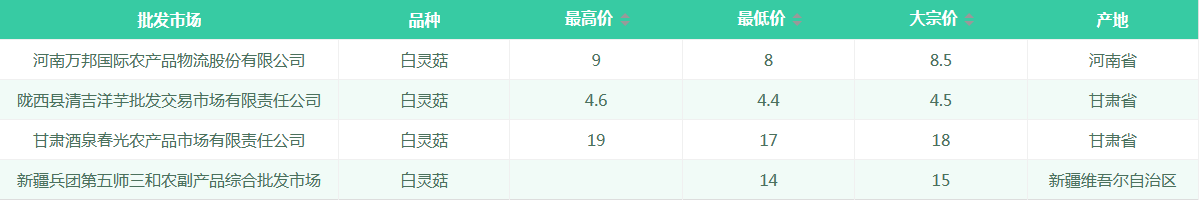 2024年4月23日全国主要批发市场白灵菇价格行情