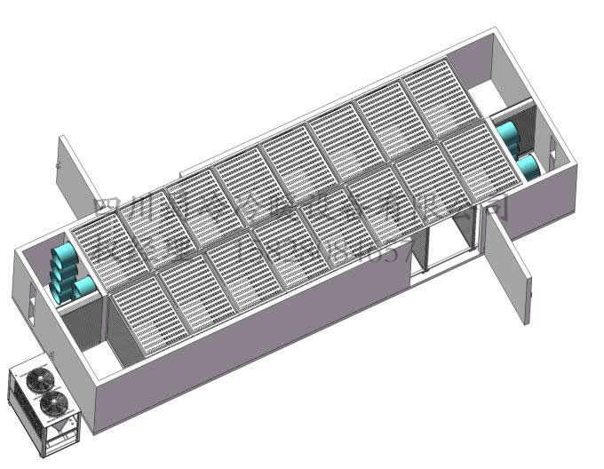 我公司热泵烘干机在不需要烘干的时候可以运行制冷模式,烘干房立马变为冷藏库,一机两用!