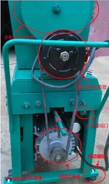 2.电机的装配:电机的主轴应配置直径70的单槽皮带轮,A型,980的皮带。10mmX30mm外螺 、10mm螺母各4个。10mm平垫8个,弹垫4个。并按照安装要求安装电机和皮带,保证其平行度。
