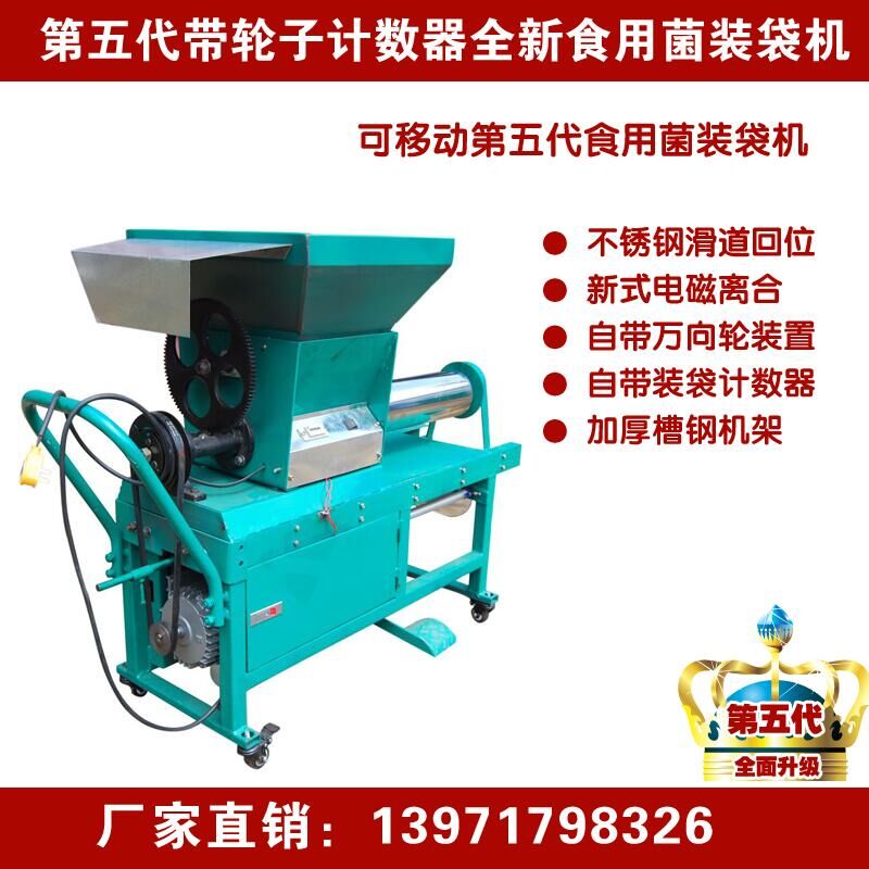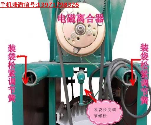 6.套上菌袋(最好先在料筒上抹些水,以便于套袋),同时往料斗里装菌末,一般第一次装满为宜。松开脚踏离合,机械开始工作。本机械松紧可自行调节(机器调节松紧位置在机箱里面)。菌袋装满后会停止工作,用脚踏离合使其自动落袋,方便快捷。以此进行工作。