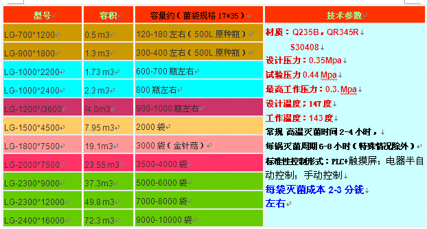 1、该锅采用多横水管结构,受热面积大、升温升压快、热效率高,是理想的菌袋灭菌炉。以17x62cm菌袋为例、2000、3000、4000袋可在3小时之内迅速达到100度。