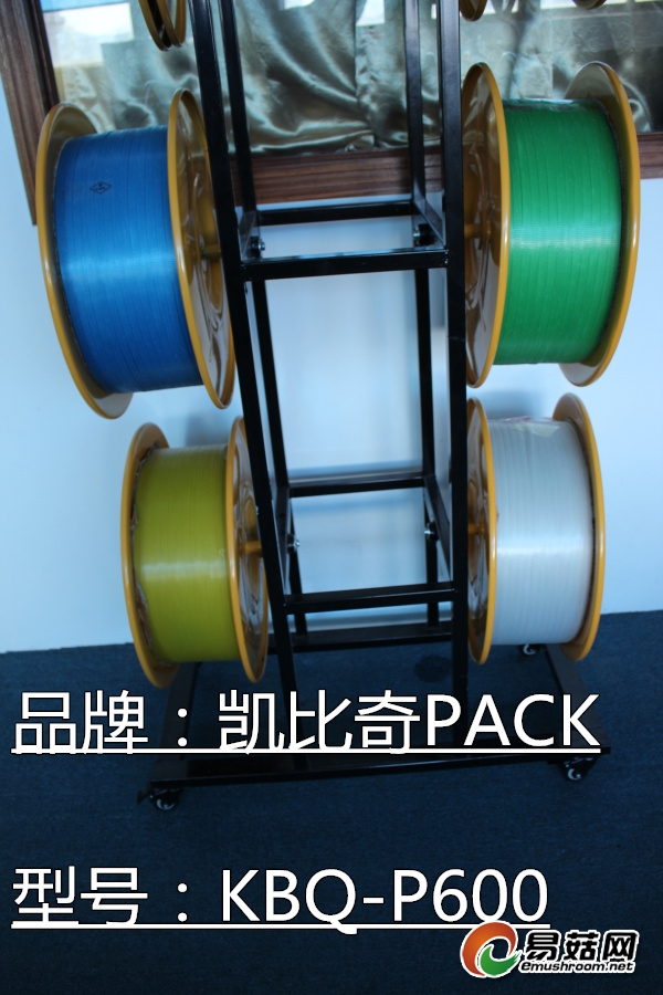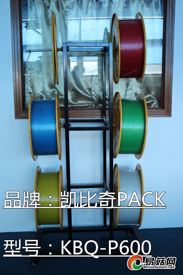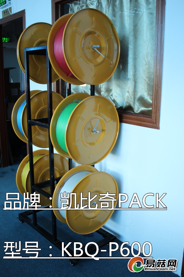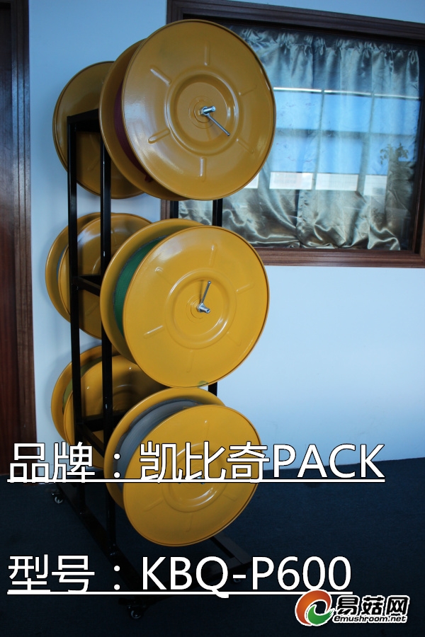 2、全国首创一车6盘打包带,解决了PP打包带展示难题,为生产PP打包带的企业提供了方便,我们这款KBQ-P600带盘车比起做展示柜简单,比起展示柜便宜,比起展示柜移动性更强,比起展示柜更美观,比起展示柜不占用空间,比起展示柜我们这款带盘车随便可以抽拉打包带。