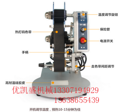 优点:打码机 使用简便!电源接通后 预热后就可使用.需要耗材包含 色带写墨轮费用低 操作简单 占地面积小 一般小型企业与中型企来使用.