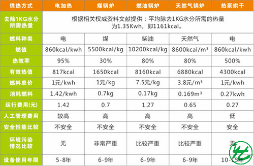 华剑空气能烘干机组比用电加热、燃油、燃气烘干节省费用,更适合长远投资。从成本效益及环境方面来看,华剑空气能烘干机组的节能方案是最经济的。