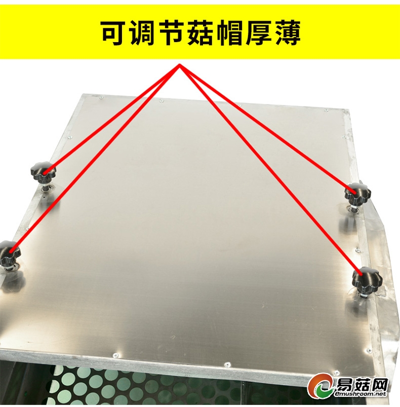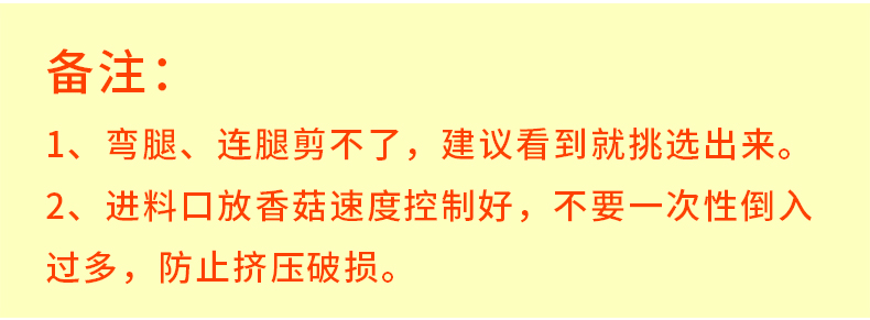 香菇剪脚机 工作方式:接通电源,直接从上料口倒入待剪香菇,通过剪刀分剪,在出料口收集已剪好香菇即可。