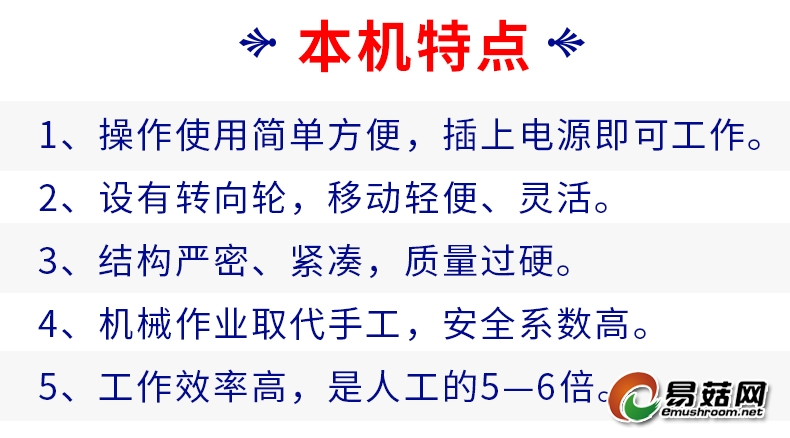 香菇剪脚机 针对菇农香菇去腿去脚人工操作劳动强度大,工作效率低下,研制开发出一款自动化香菇剪腿农用机械。是一款高效率安全度高的自动化机械。该项成功发明能大大提高香菇剪腿的工作效率。