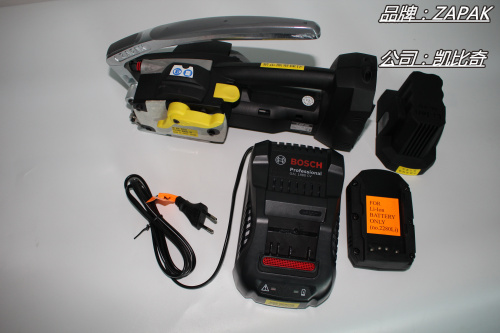 2、博世做电池,工具是很有名气的,大家都知道ZP22-9C打包机来自台湾ZAPAK公司制造,但你还不知道ZAPAK公司只会打包机不会生产电池,所以他配套的电池,充电器肯定需要外购,所以目前市场上ORGPACK,ZPAPK这两家打包机公司的蓄电池,充电器都来自博世制造,凯比奇包装这样为你介绍 打包机配套的 电池,充电器需要外购,这样你懂为什么了吗?
