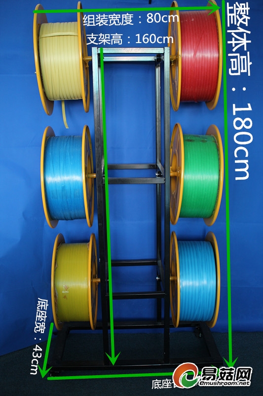 1、别看我们这款KBQ-P600带盘车外观简单,但实用性非常高,我们这款带盘车带脚轮方便移动,方便推拉,我们每个带盘都是通过加强承重轴承,一个盘都可以承重25kg左右打包带完全没问题,整体承重200kg以内打包带完全合理范围,我们的支架采用加厚方钢生产,所以你在使用中完全放心没问题。
