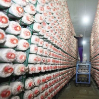 平菇为例,菌袋上架时间长,菌袋放置好以后,好几个月不用动,方便管理采摘。
